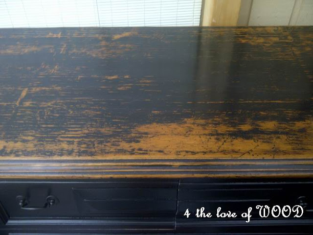 I did try out some distressing but both George and I liked the sleek black look better.